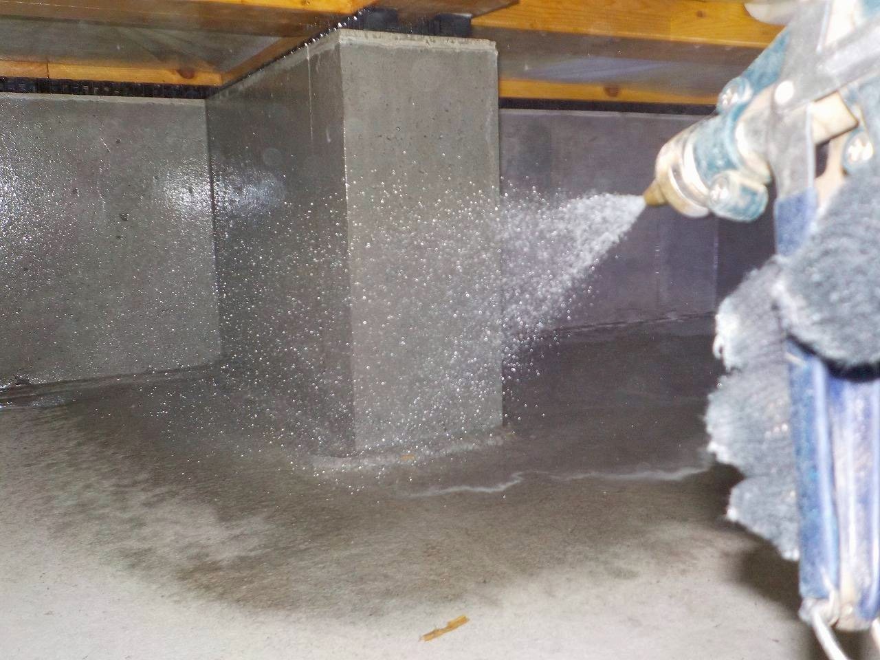 事前調査の際と同じく、床下点検口などから床下に浸入し、薬剤を散布していきます。